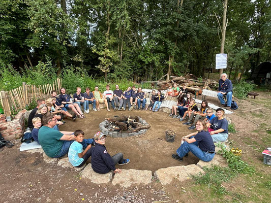 Am vergangenen Samstag hat unsere alljährliche Stammesvollversammlung in unsrem Stammesheim in Arheiligen stattgefunden. Auf dem Plan standen vor allem Wahlen. Unsere bisherige Doppelspitze Caro und Chont sind als Vorstände und StaFüs zurückgetreten. Wir freuen uns nun, dass ein neues Trio in Zukunft unseren Stamm leitet. Die SVV hat Carla als unseren neuen Vorstand und David und Kjell als neue Stammesführungen gewählt. Zusammen mit unserem Kassenwart Reinhard werden sie in Zukunft die Geschicke es Stammes bestimmen! Wir freuen uns sehr, dass wir eine so motivierte, junge Generation im Stamm haben! Auch unser neuer Jugendvorstand Sebastian wurde einstimmig gewählt. Nach dem offiziellen Teil haben wir noch unsere neue Feuerstelle ordentlich eingeweiht. Es gab eine große Singerunde mit Chai! Die Pandas haben außerdem Paella gekocht, in der großen Pfanne, die damit bewiesen hat, dass sie noch was taugt und so geradeso ihrem Schicksal, zur Feuerschale umfuktioniert zu werden, entgangen ist.